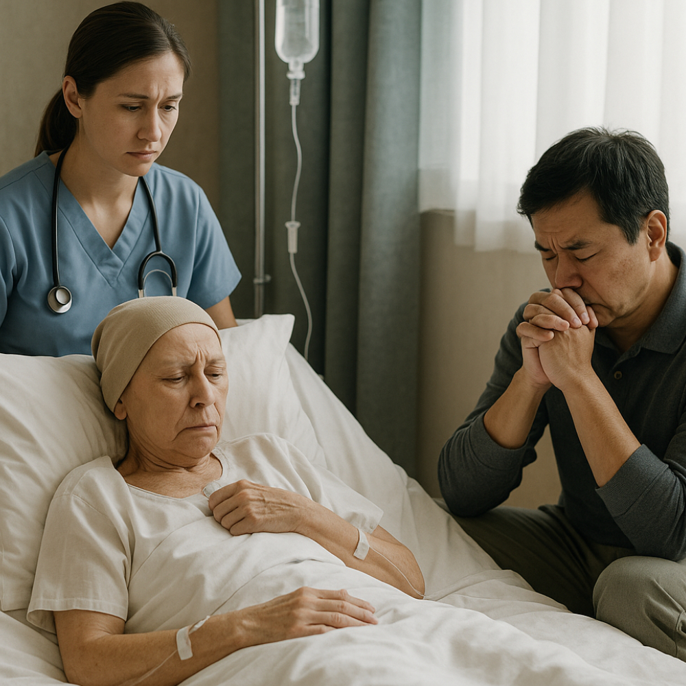 간암 말기 환자로 통증 조절 및 수면 유지를 위해 입원한 70대 여성. 자주 통증 호소 및 불안 증상, 가족들은 24시간 간병 어려움 호소.
